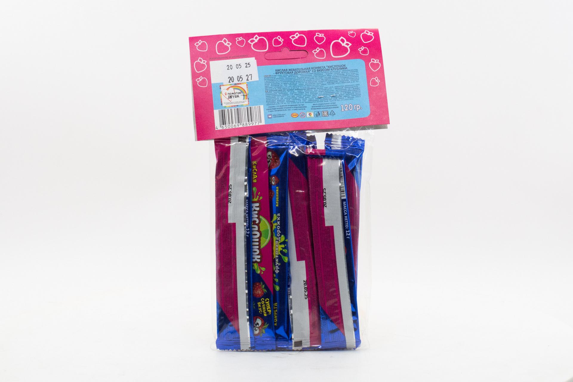 Кислая жевательная конфета Кислошок - фруктовая дорожка 10 со вкусом клубники (Россия) 120г61,33 руб. за штуку (в упак. 36 шт.) |